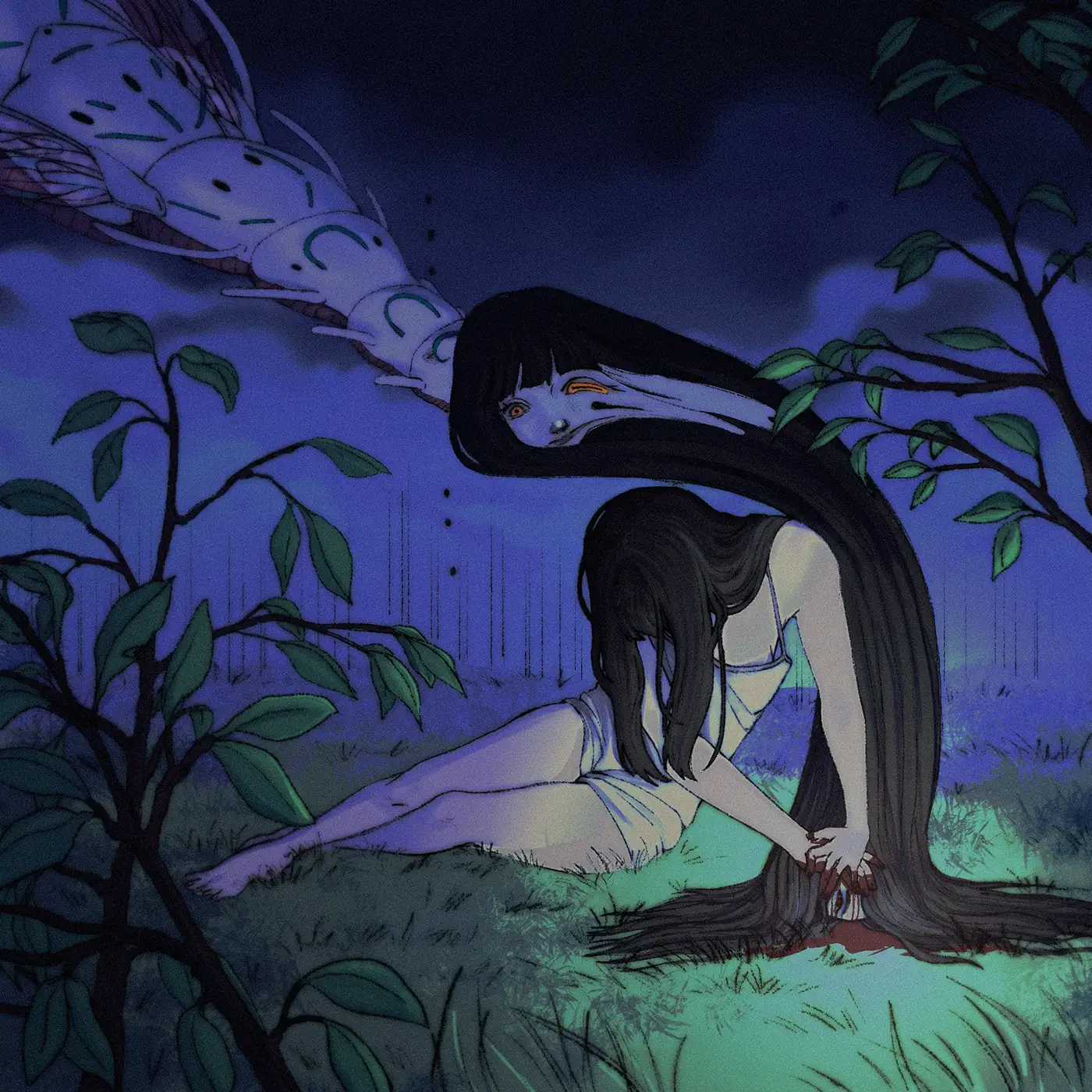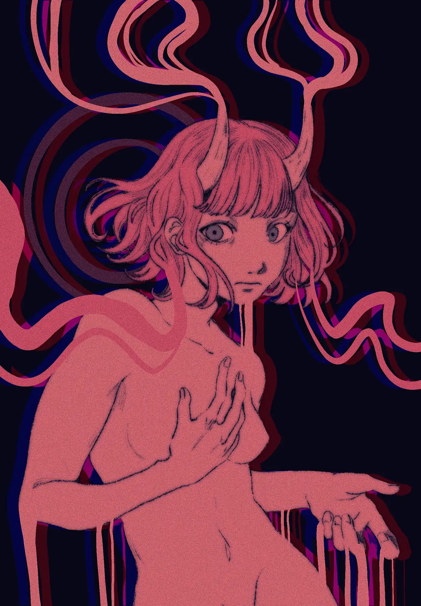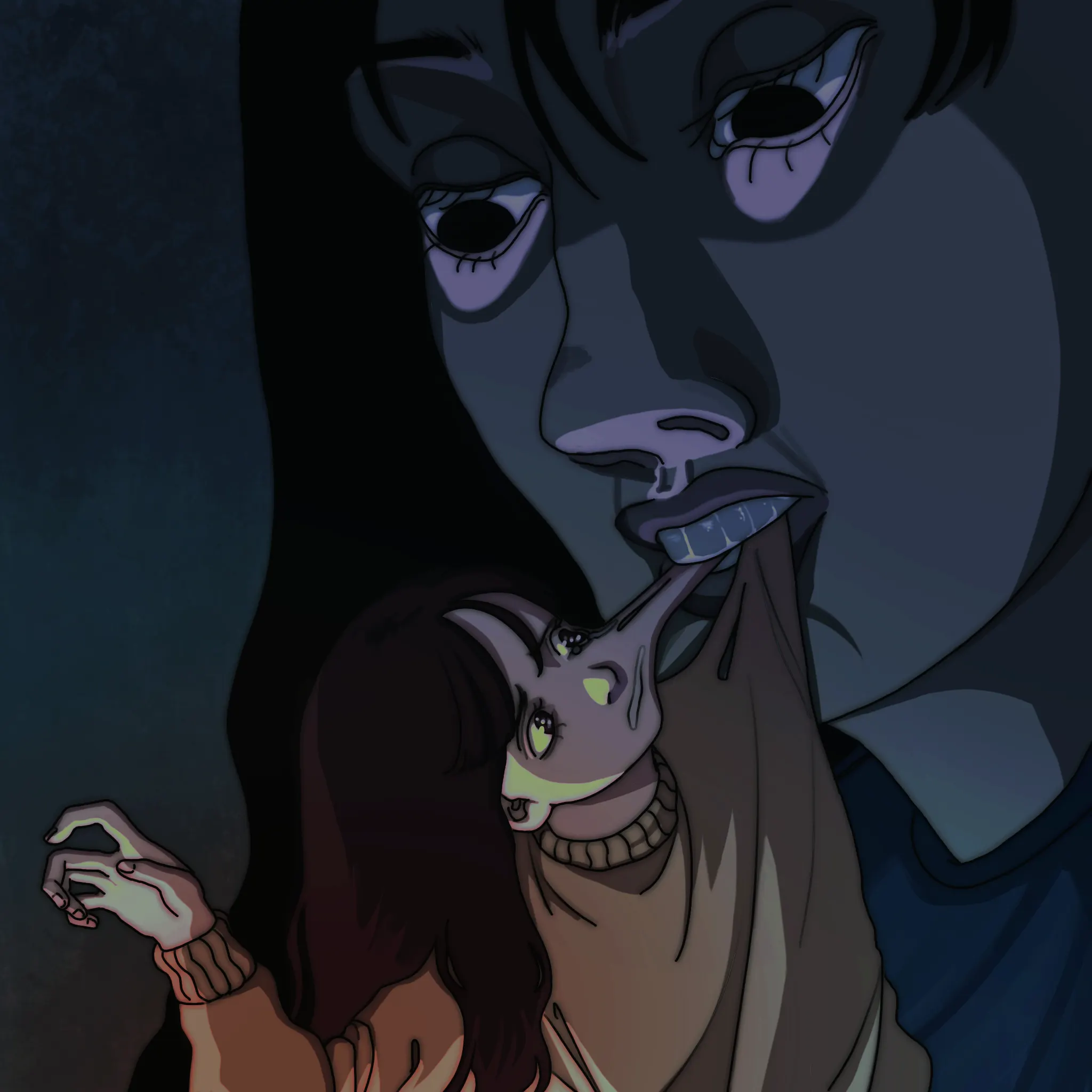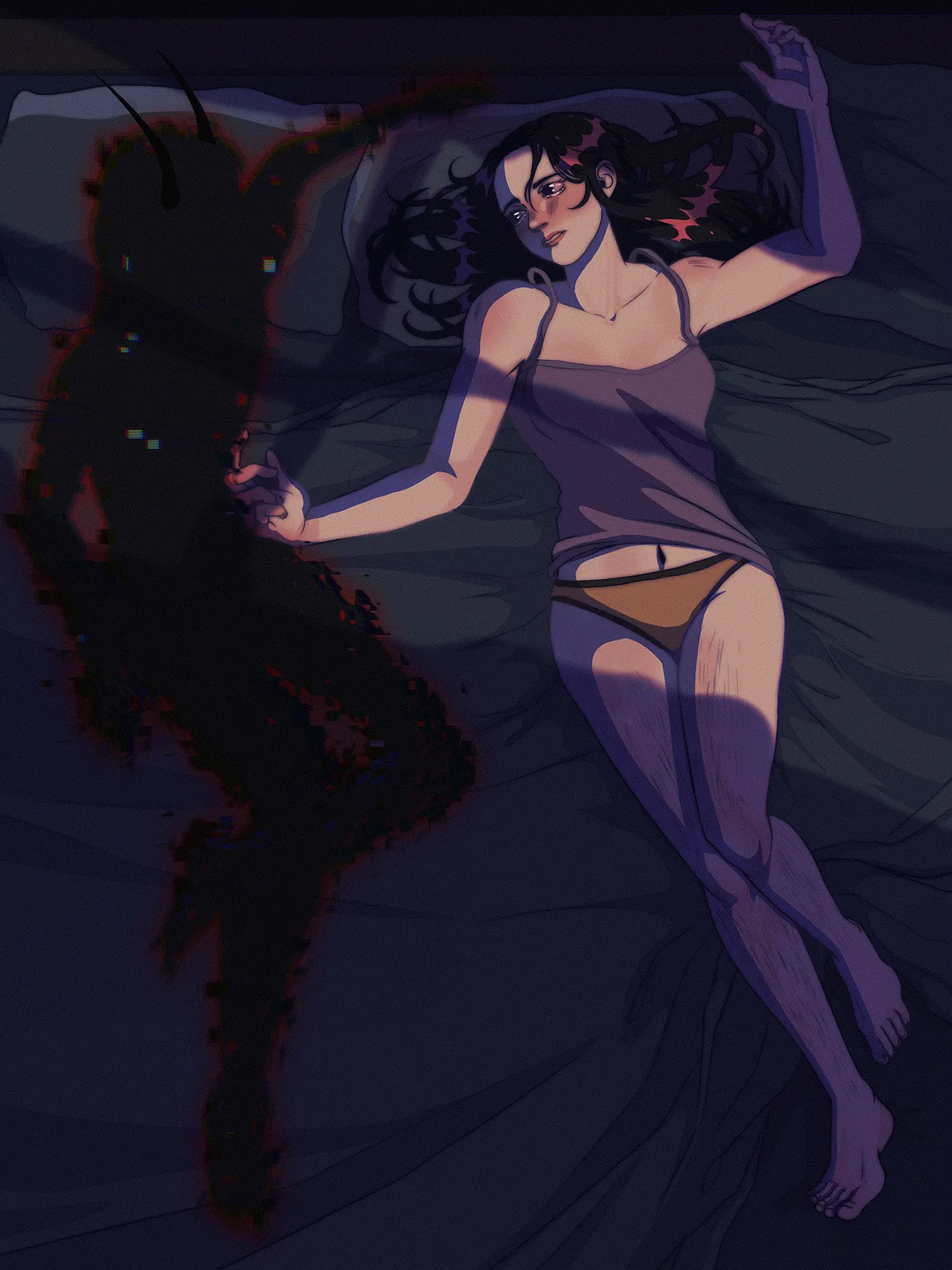 « Terreur Nocturne » is an old animation project I did in highschool using Clip Studio. It represents a nightmare, where I asked my classmates what they were afraid of.