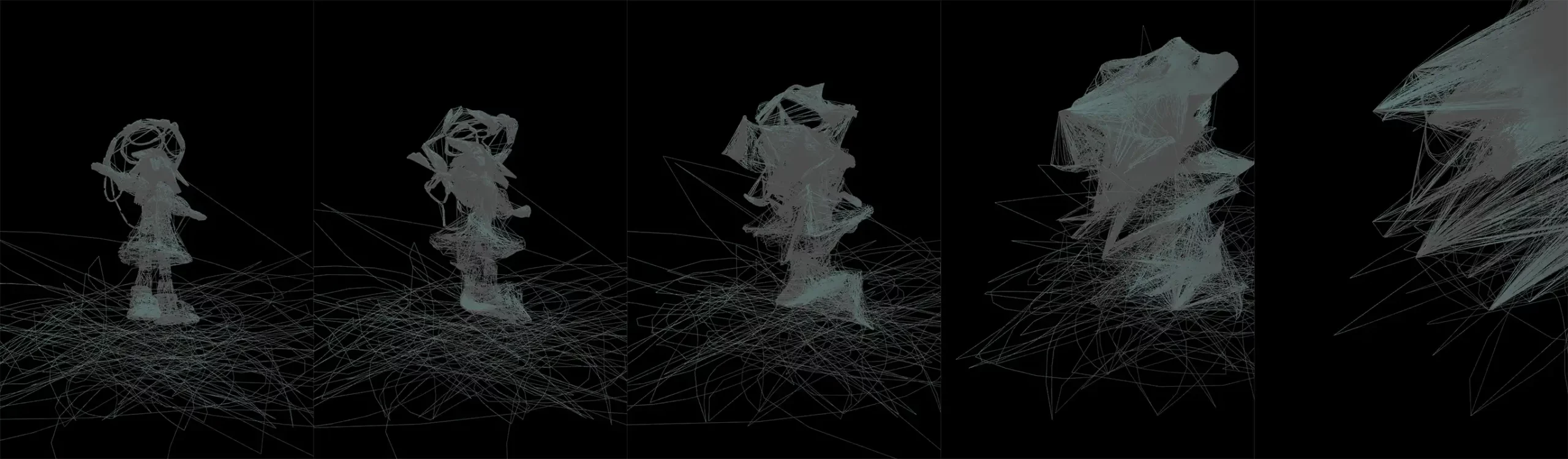 This character is inspired by the “psychiatrist AI” called Eliza. I wanted to embody this AI to illustrate parasocial relationships which are a big part of our lives now. I was inspired by Frankenstein and again Philippe Parreno’s work with Ann Lee.